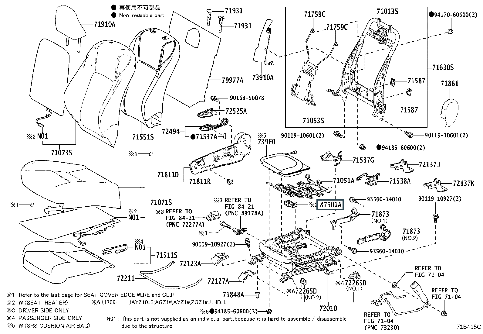 87501-30041, CONTROL SUB-ASSY, SEAT HEATER, LH