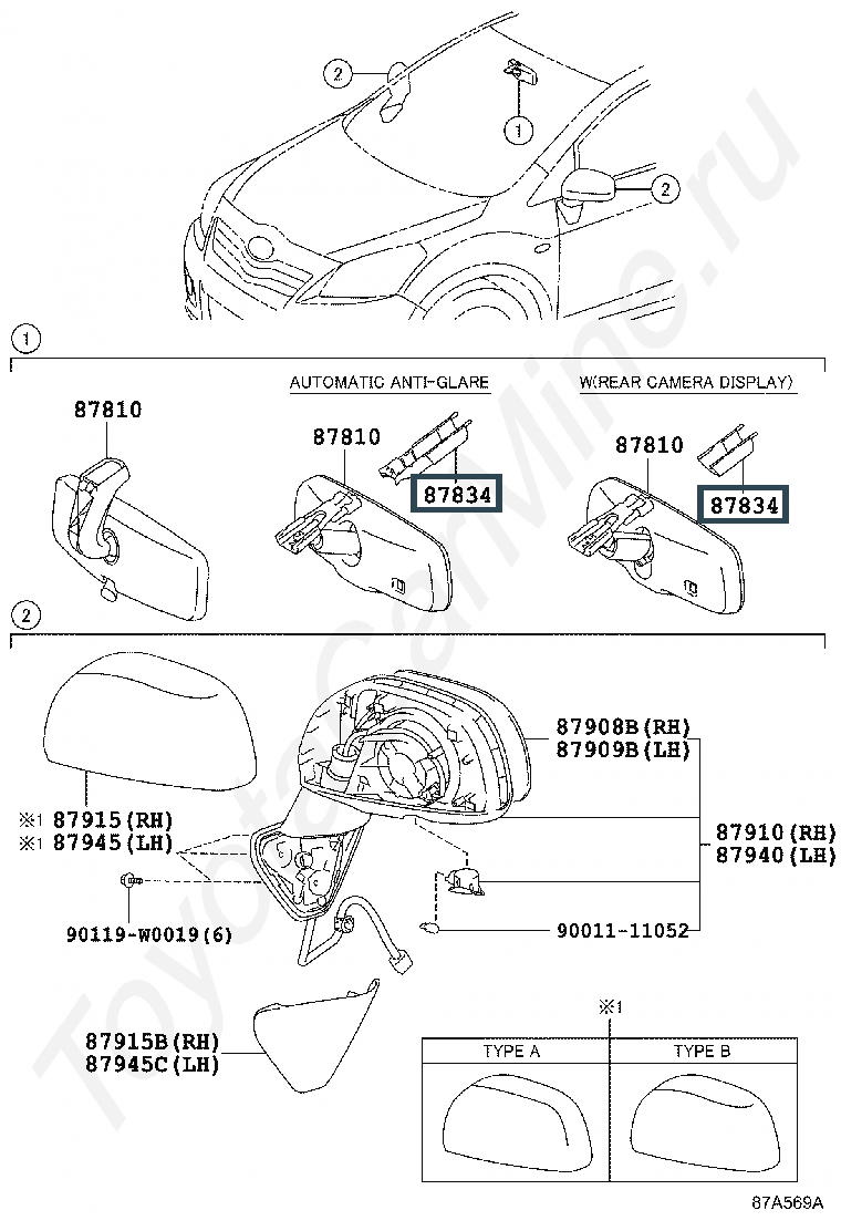 87818-0F040, COVER, INNER REAR VIEW MIRROR STAY HOLDER