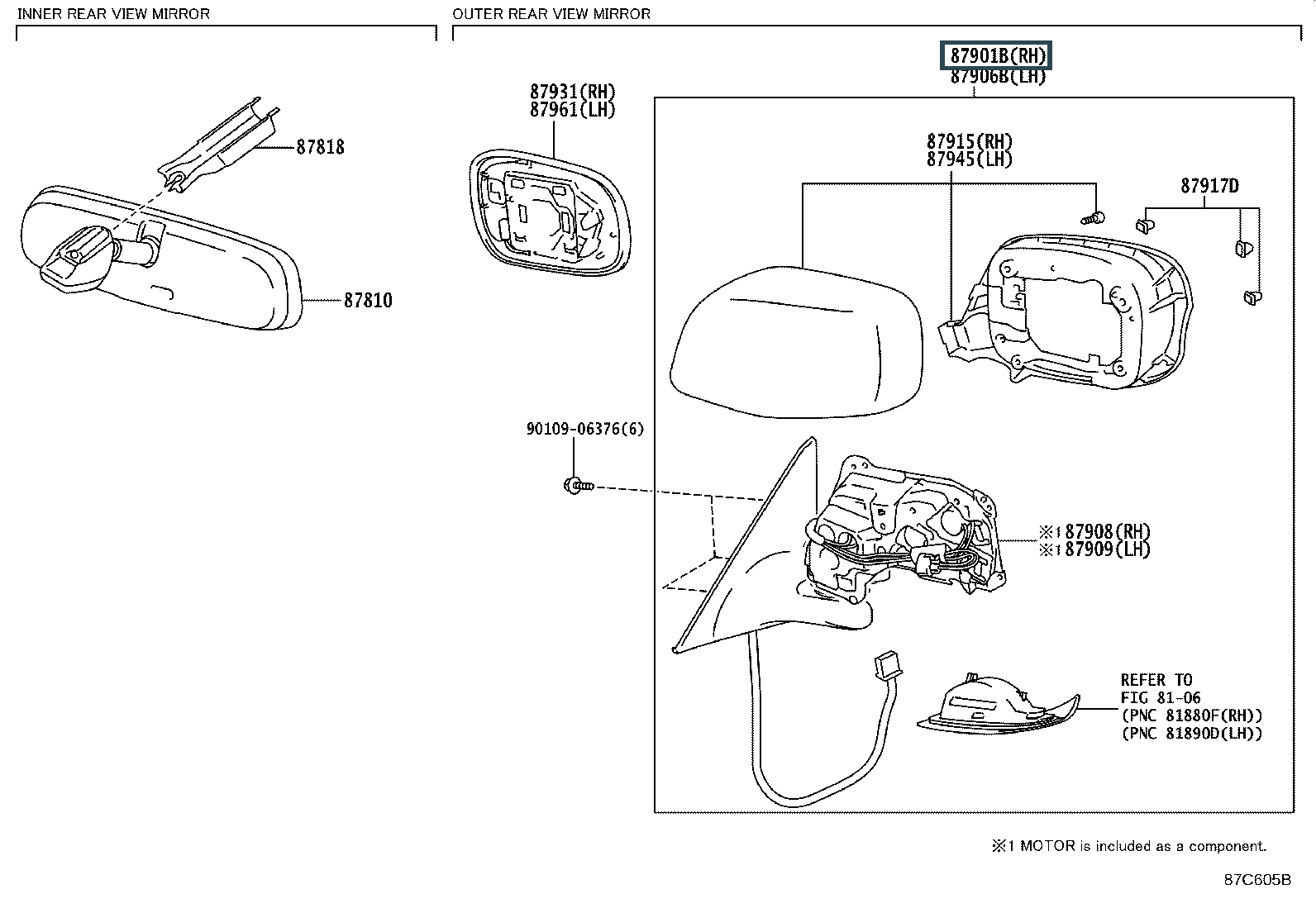 87901-30320-C2, MIRROR SUB-ASSY, OUTER REAR VIEW, RH