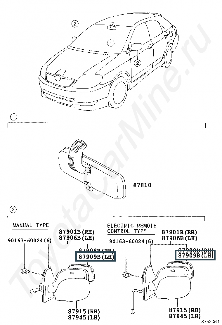 87909-05290, MIRROR SUB-ASSY, LH