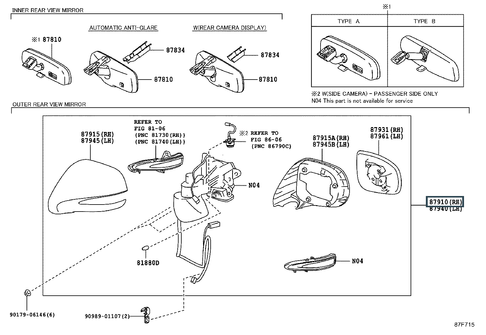 87910-48492-D1, MIRROR ASSY, OUTER REAR VIEW, RH