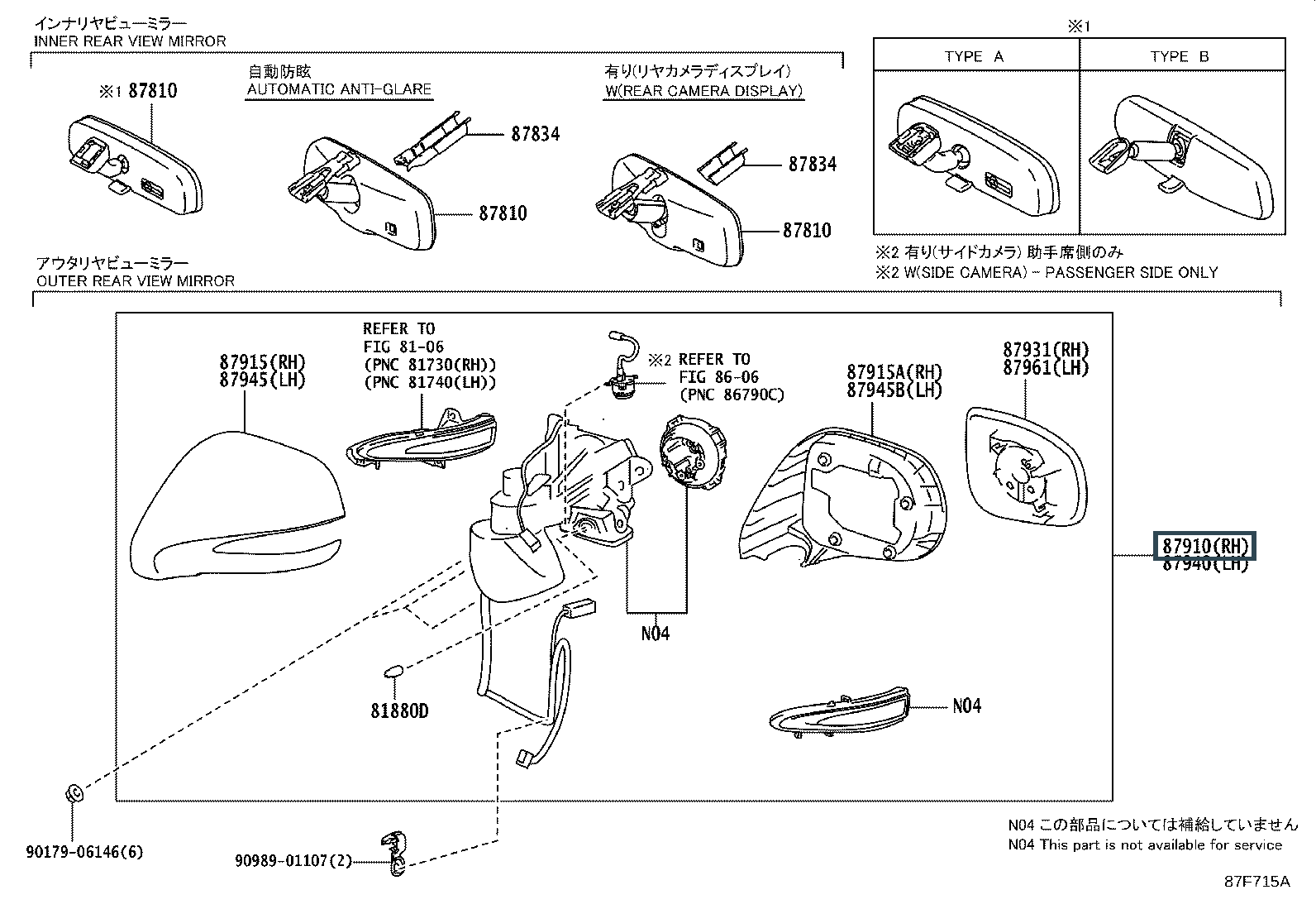 87910-48590-A0, MIRROR ASSY, OUTER REAR VIEW, RH