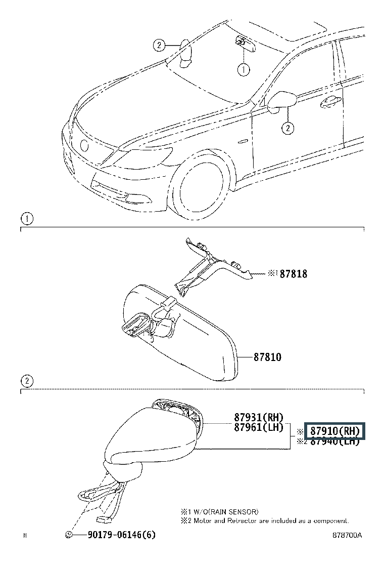 87910-50580-B0, MIRROR ASSY, OUTER REAR VIEW, RH