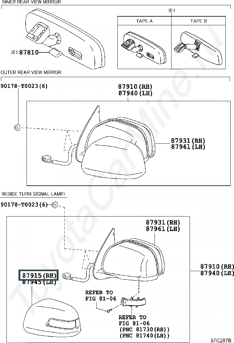87915-0K250, COVER, OUTER MIRROR, RH