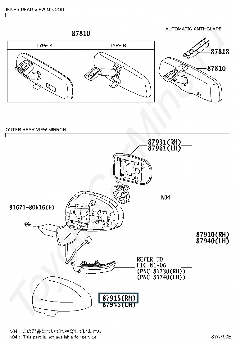 87915-74010-J8, COVER, OUTER MIRROR, RH