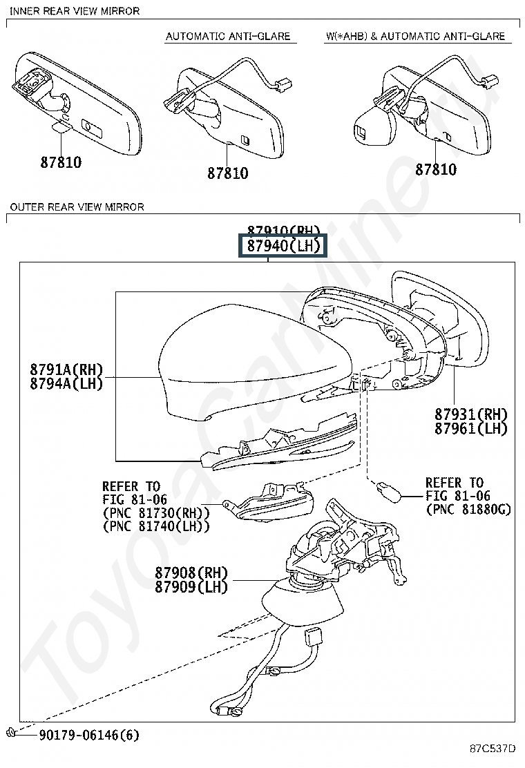 87940-30E80-A0, MIRROR ASSY, OUTER REAR VIEW, LH