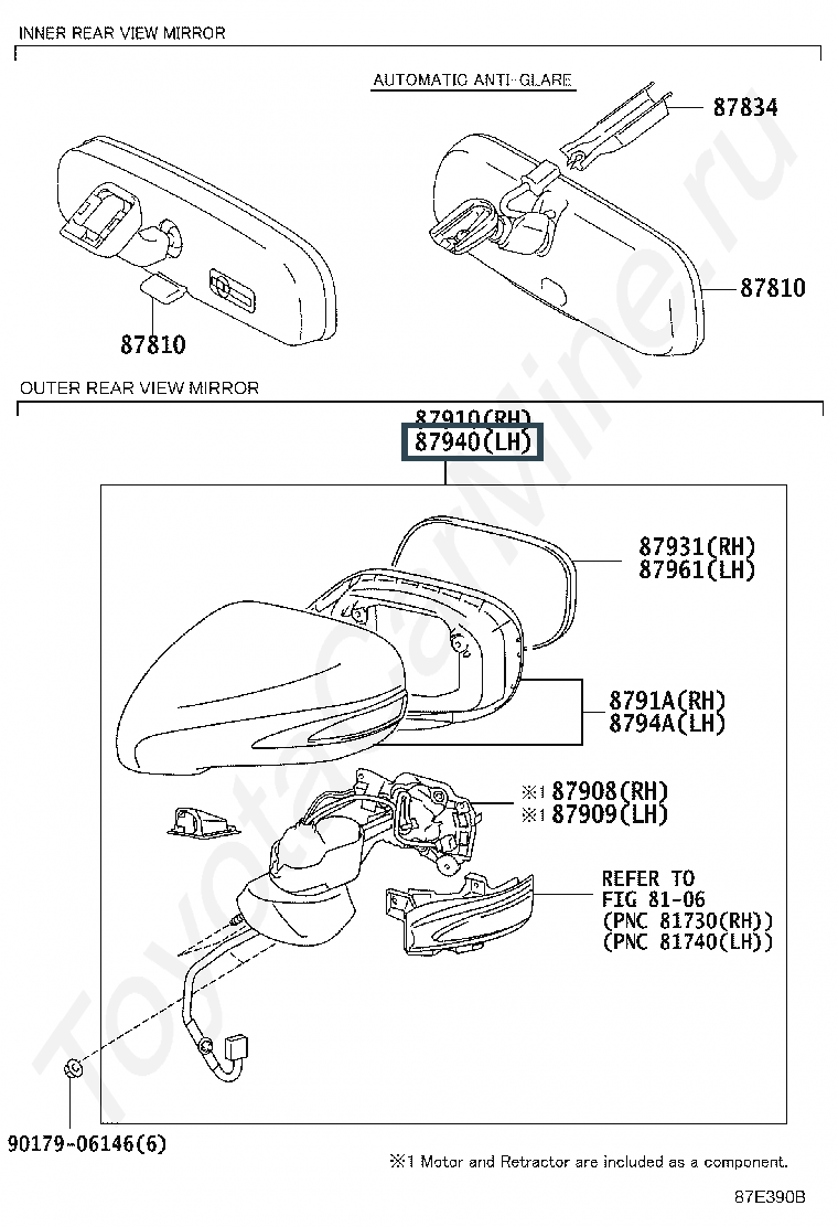 87940-53530-E0, MIRROR ASSY, OUTER REAR VIEW, LH