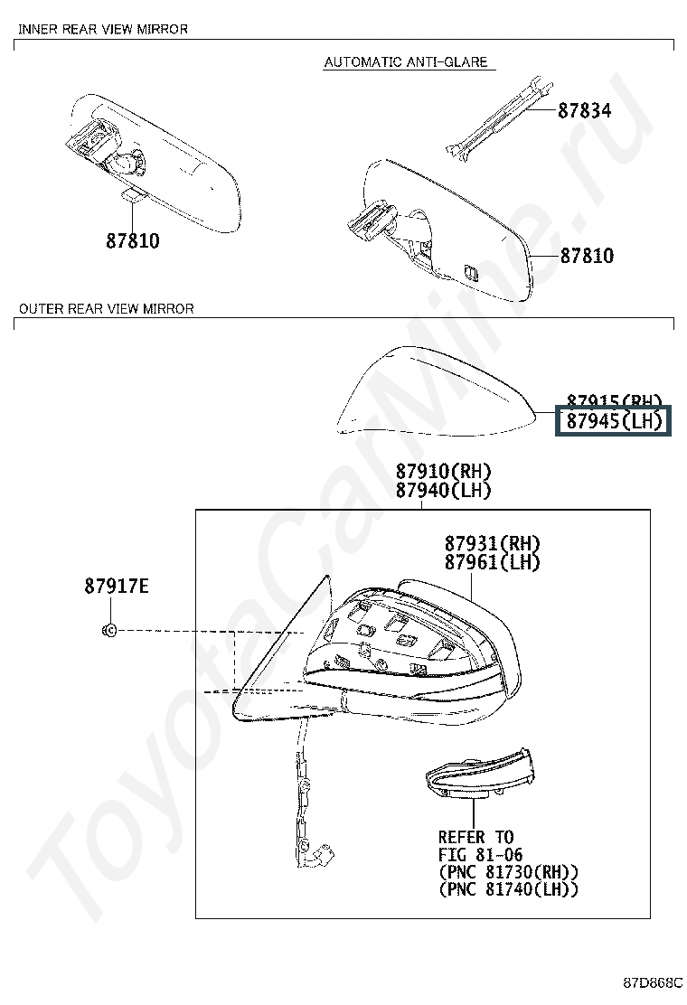 87945-0E040-B2, COVER, OUTER MIRROR, LH