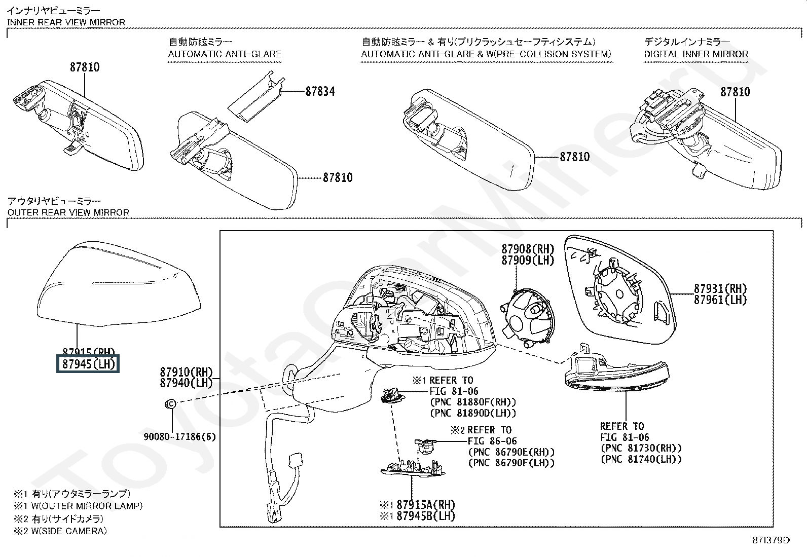 87945-0E070-A0, COVER, OUTER MIRROR, LH