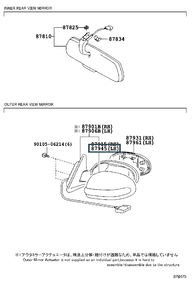 87945-24010-B2, COVER, OUTER MIRROR, LH