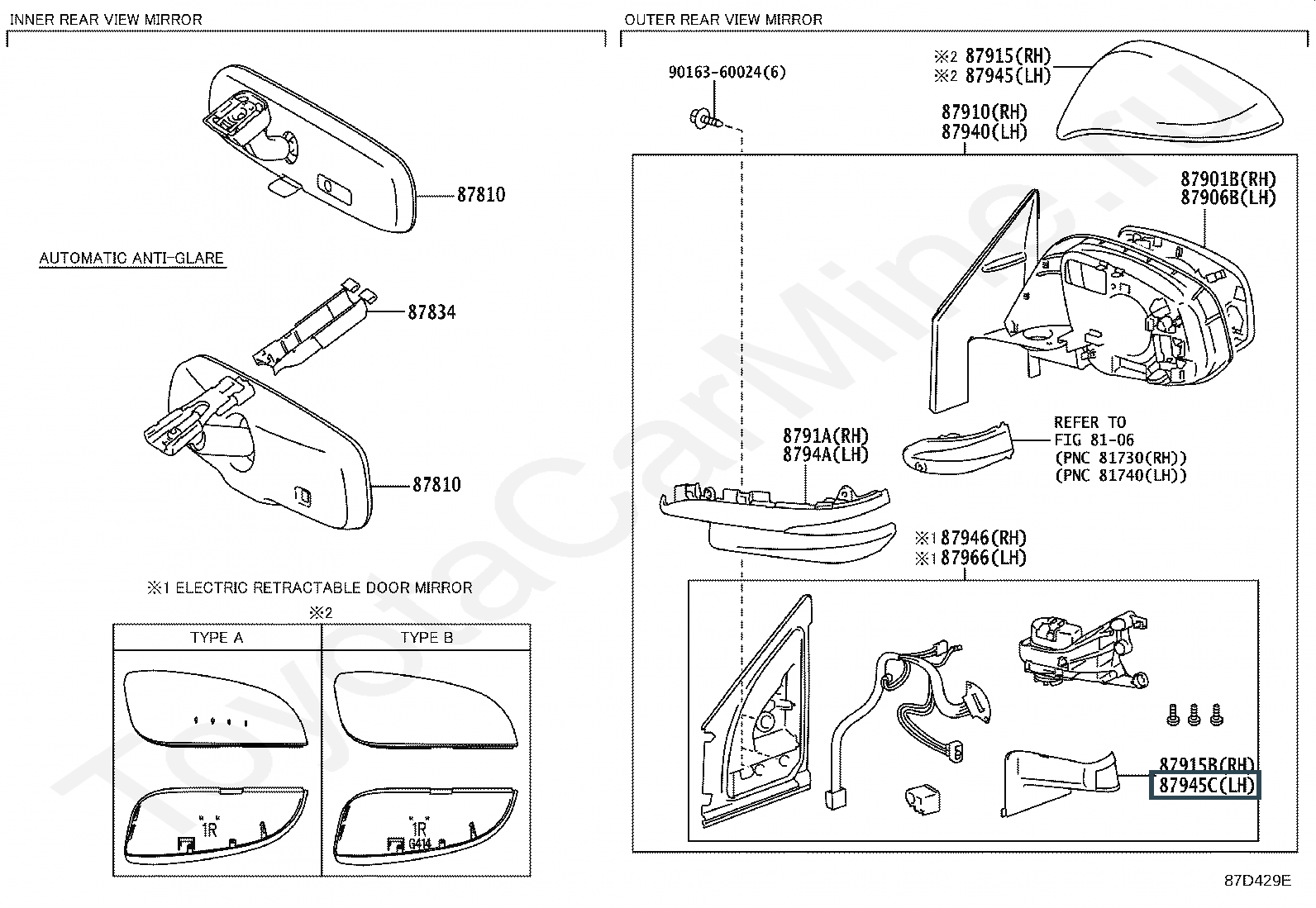 87945-42140, COVER, OUTER MIRROR, LOWER LH