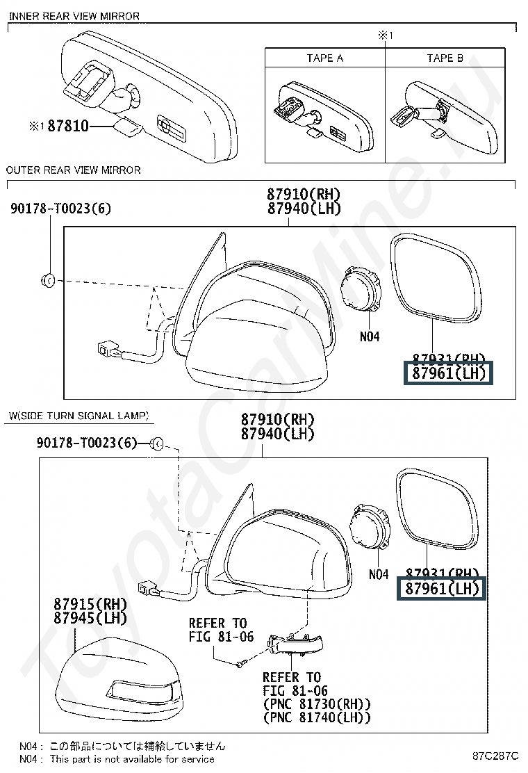 87961-0K730, MIRROR OUTER, LH