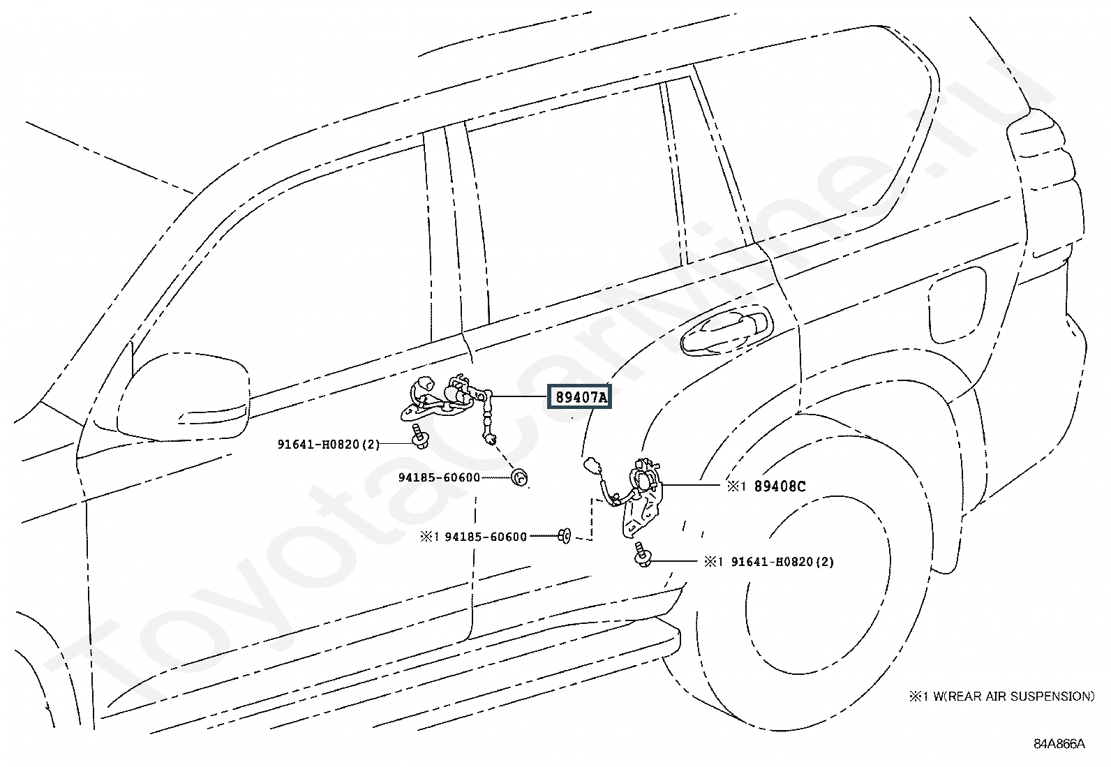 89407-60040, датчик положения кузова задний