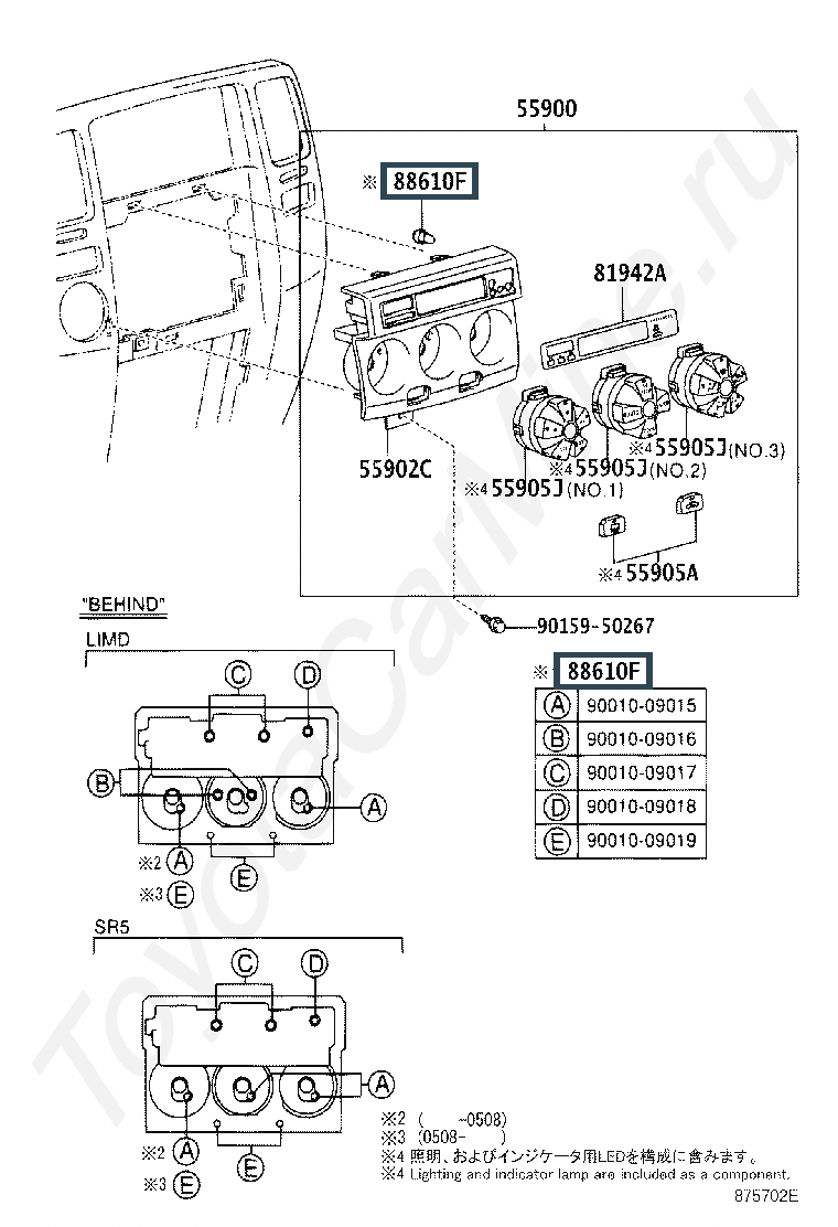 90010-09016, BULB, COOLER CONTROL SWITCH
