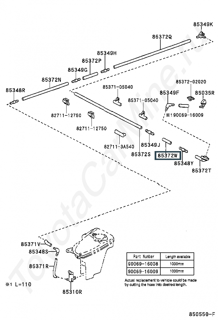 90069-16009, HOSE, REAR WASHER (FROM JOINT TO JOINT), NO.5