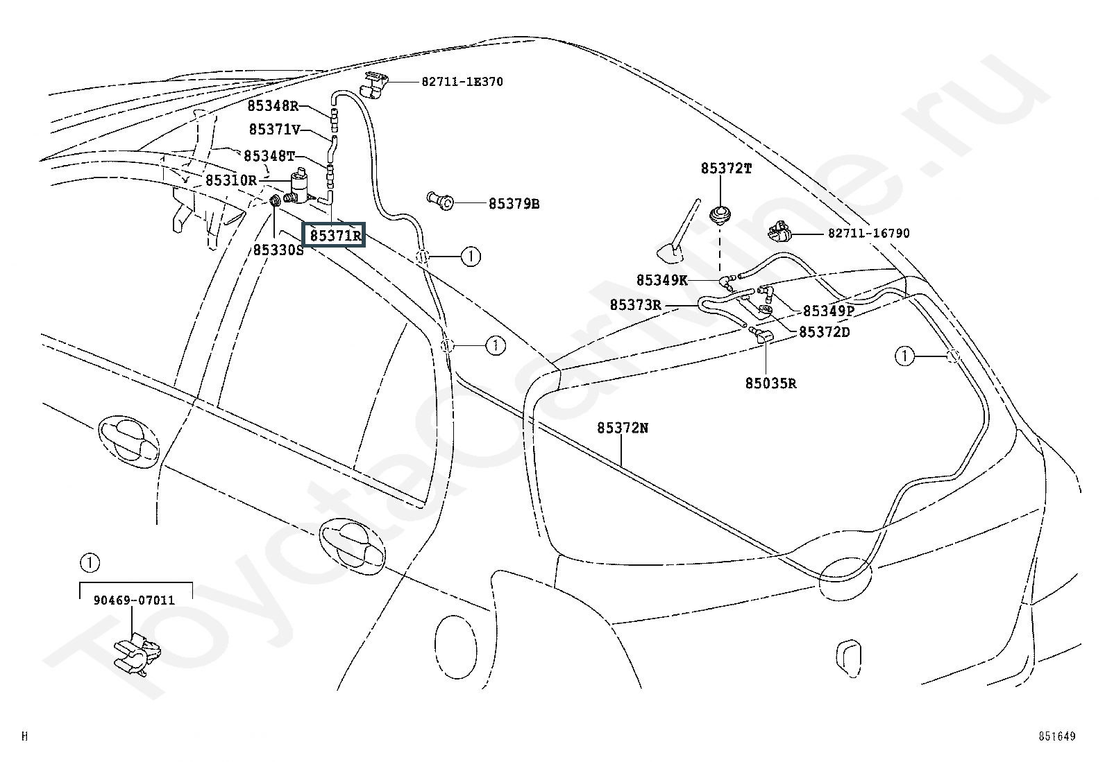 90069-46036, HOSE, REAR WASHER (FROM MOTOR TO JOINT)