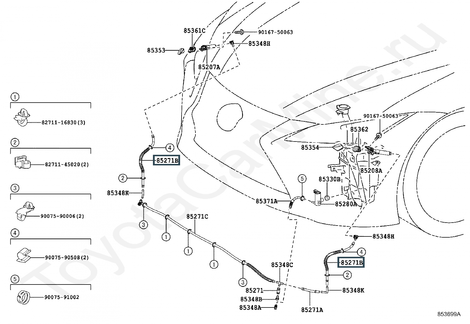 90075-15101, HOSE, HEADLAMP CLEANER, NO.3