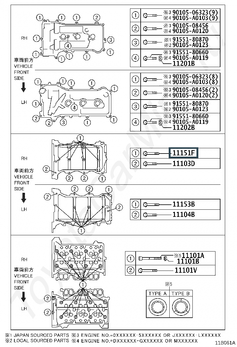 90119-A0208, BOLT(FOR CAMSHAFT BEARING CAP TO HOUSING LH, NO.2)