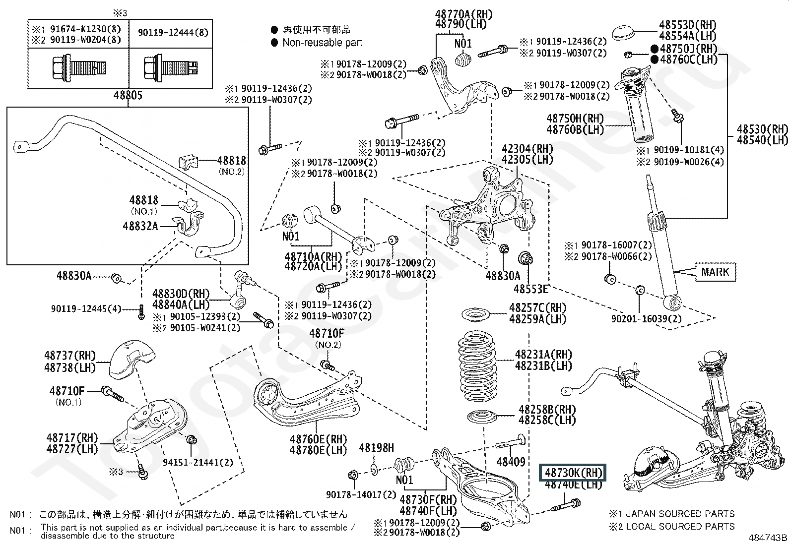 90119-A0433, BOLT(FOR REAR SUSPENSION ARM NO.2 LH)