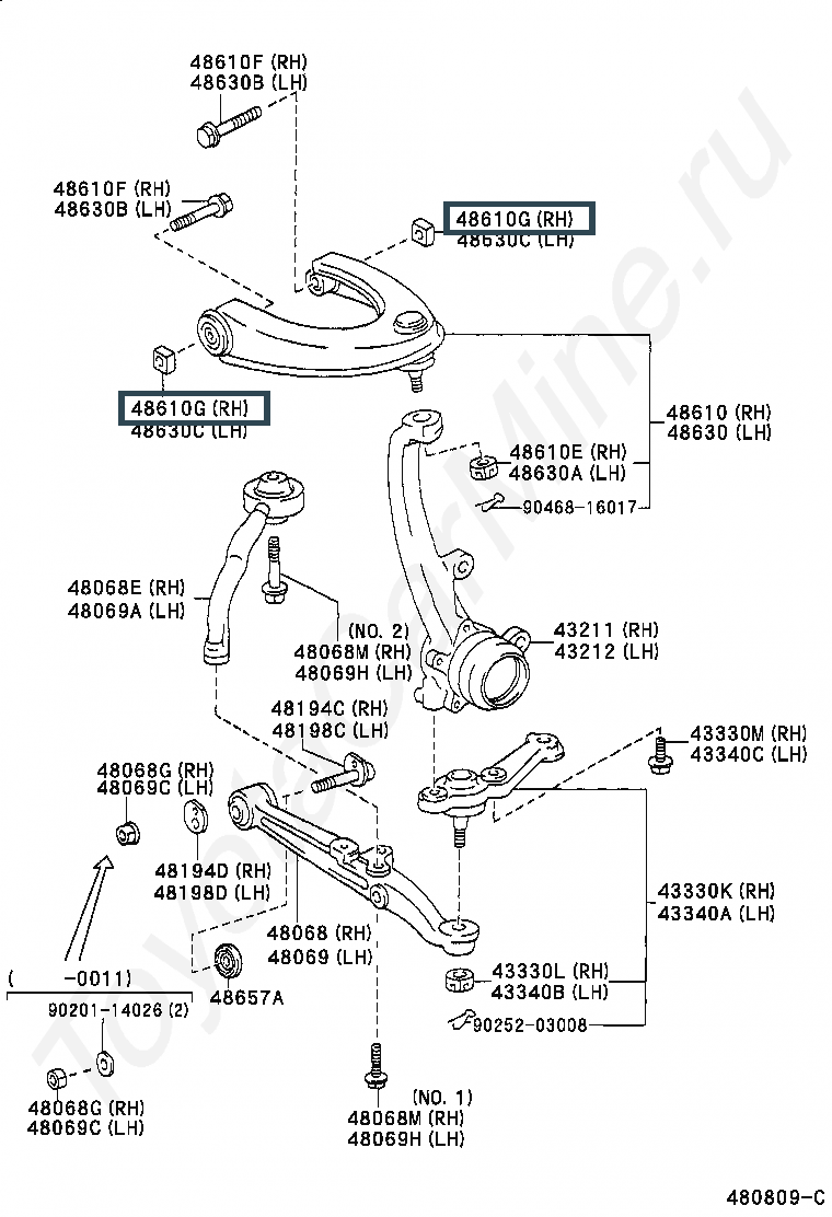 90173-10010, NUT(FOR FRONT SUSPENSION UPPER ARM LH)