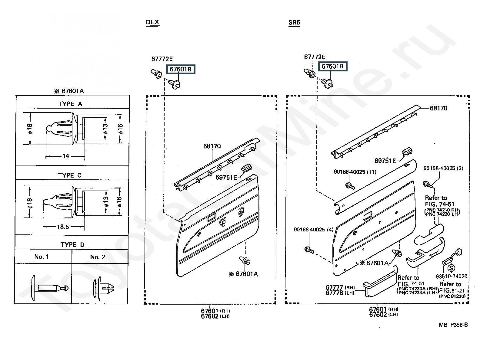 90467-07085-E2, CLIP(FOR FRONT DOOR TRIM BOARD)