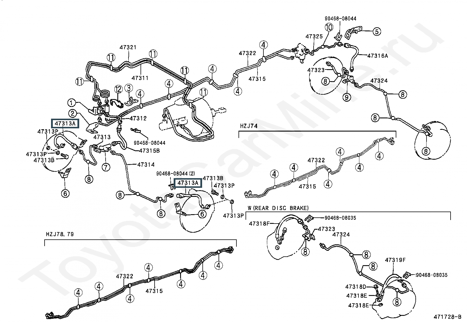 90947-02B48, HOSE, FLEXIBLE, NO.1(FOR FRONT)