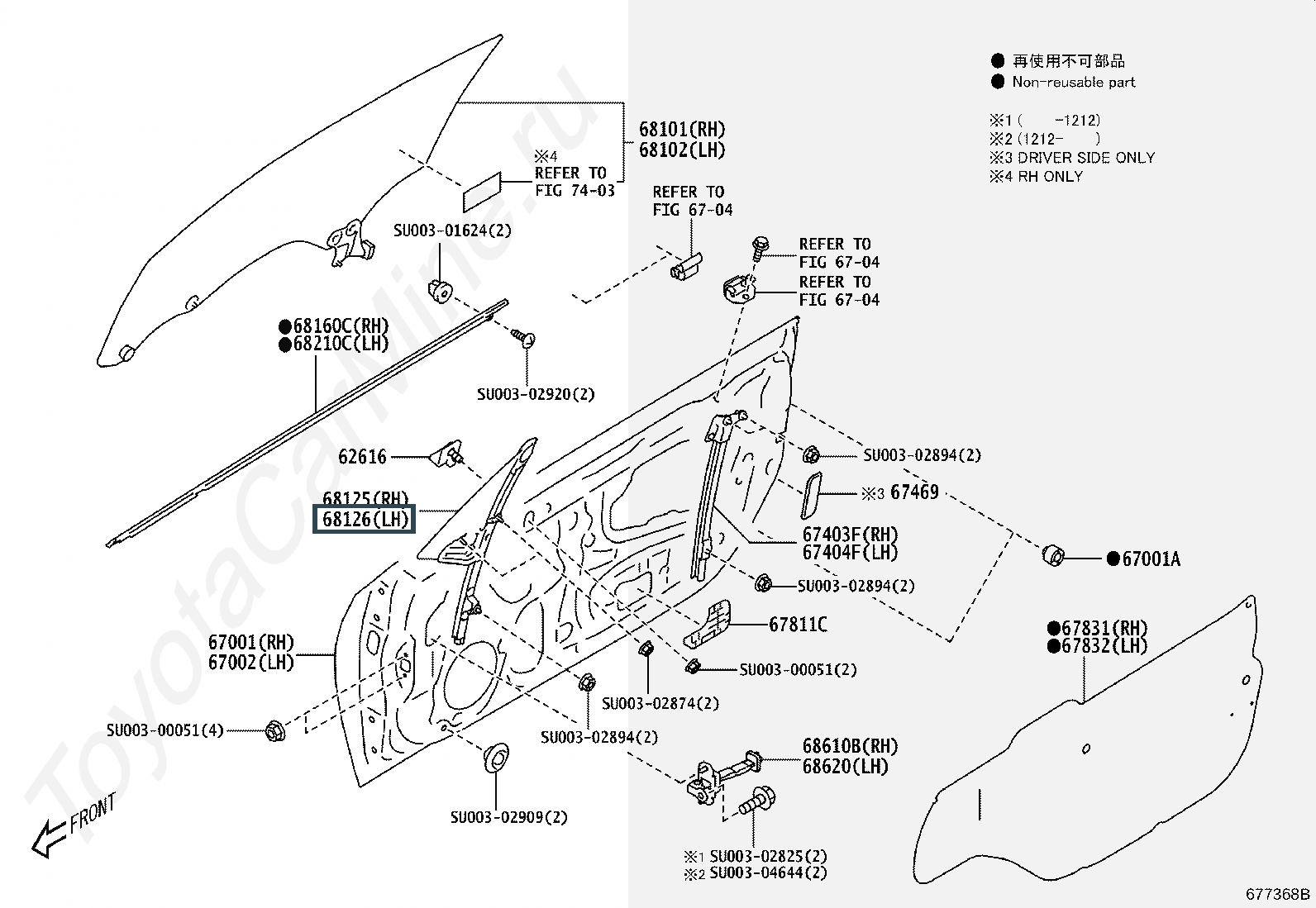 SU003-G0023, GLASS, FRONT DOOR FIX WINDOW, LH